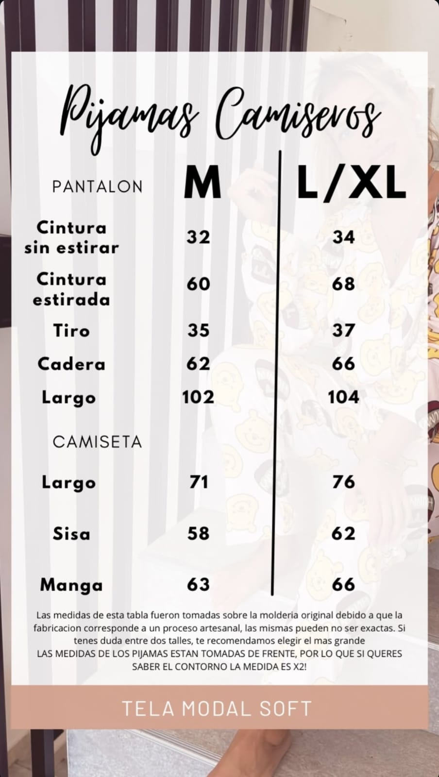 42-44-46 de pantalón y M-L de remera